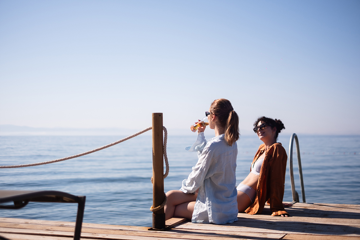 Casa Linn’s private beach and pier offer a calm, comfortable space for guests to enjoy the sea throughout the day. You can dive straight into the water from the pier, sunbathe on a lounger, or simply relax in the shade.