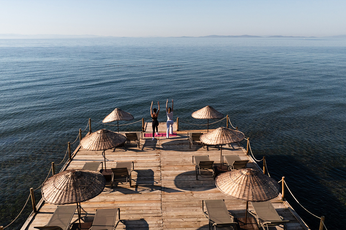 At Casa Linn, the day begins with a morning yoga session on the pier—offering guests both physical and mental relaxation. Practiced right beside the sea, this gentle routine focuses on breath, flexibility, and inner calm.